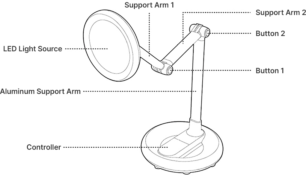 - While holding down 'Button 2', move the support arm up or down to adjust it to the desired height.