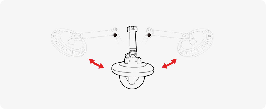 - The arm has a horizontal rotation range of 180 degrees; however, be aware that forcing the rotation can cause the unit to tip over.